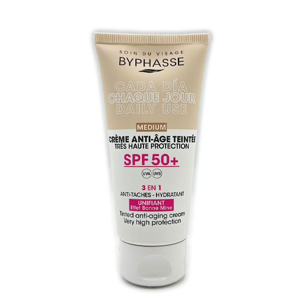 ویژگی ها ضد آفتاب ضد پیری رنگی بایفاس Byphasse مدل Medium حجم 50 میل