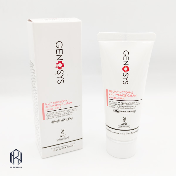 کرم ضد چین و چروک از برند معتبر ژنوسیس دارای ماده موثر باکوچیول است که جایگیزین مناسبی به جای استفاده از رتینول می باشد. این کرم علاوه بر خواص ضد پیری به کلاژن سازی و همین طور دارای خاصیت روشن کنندگی برای پوست می باشد.
